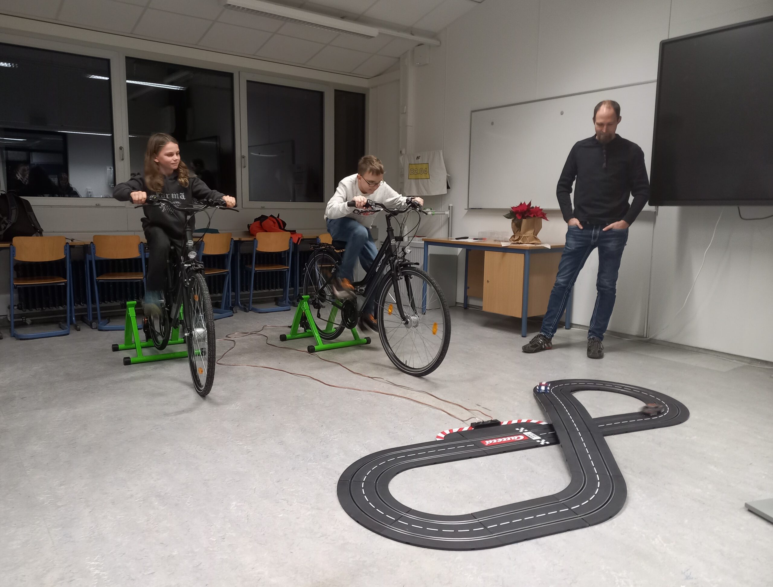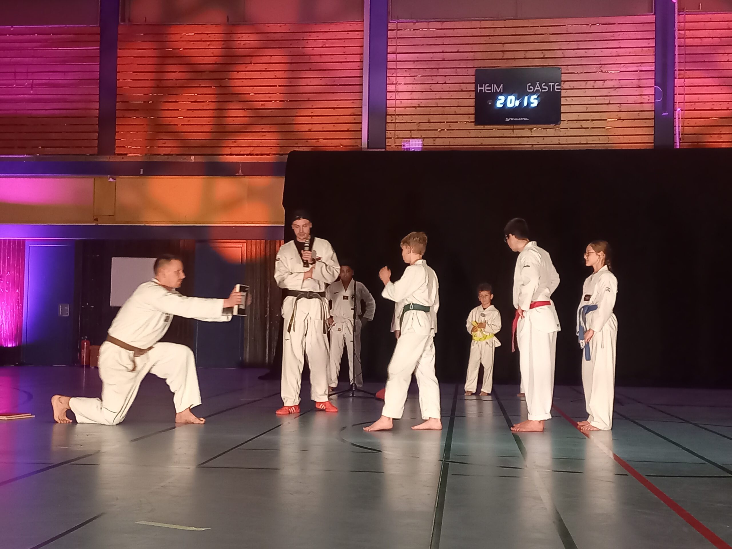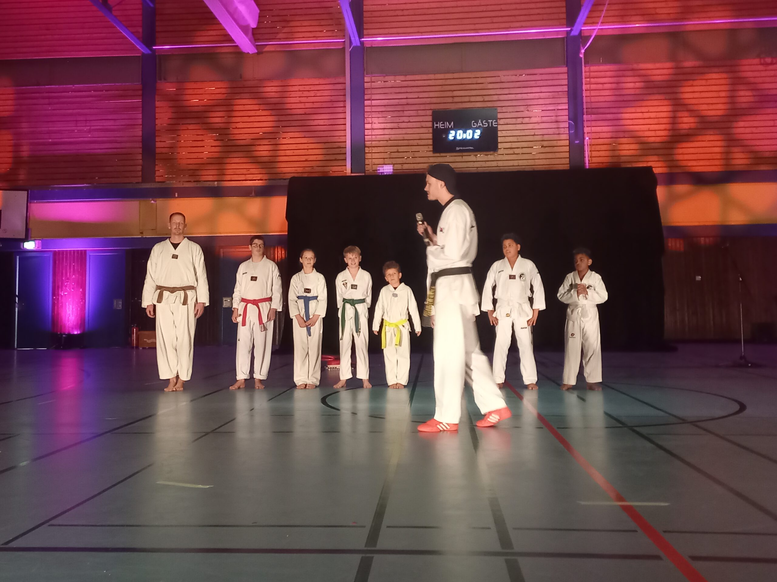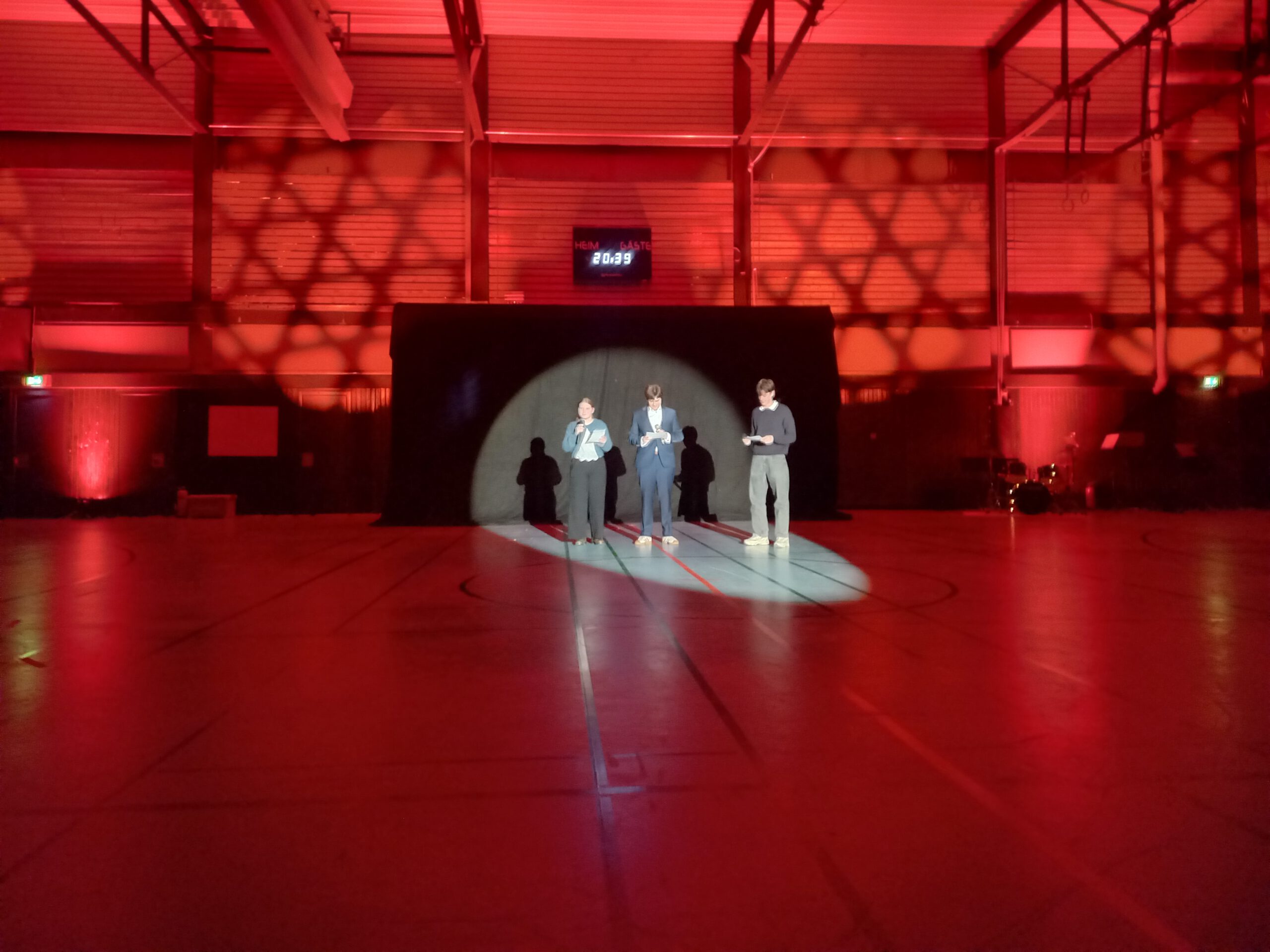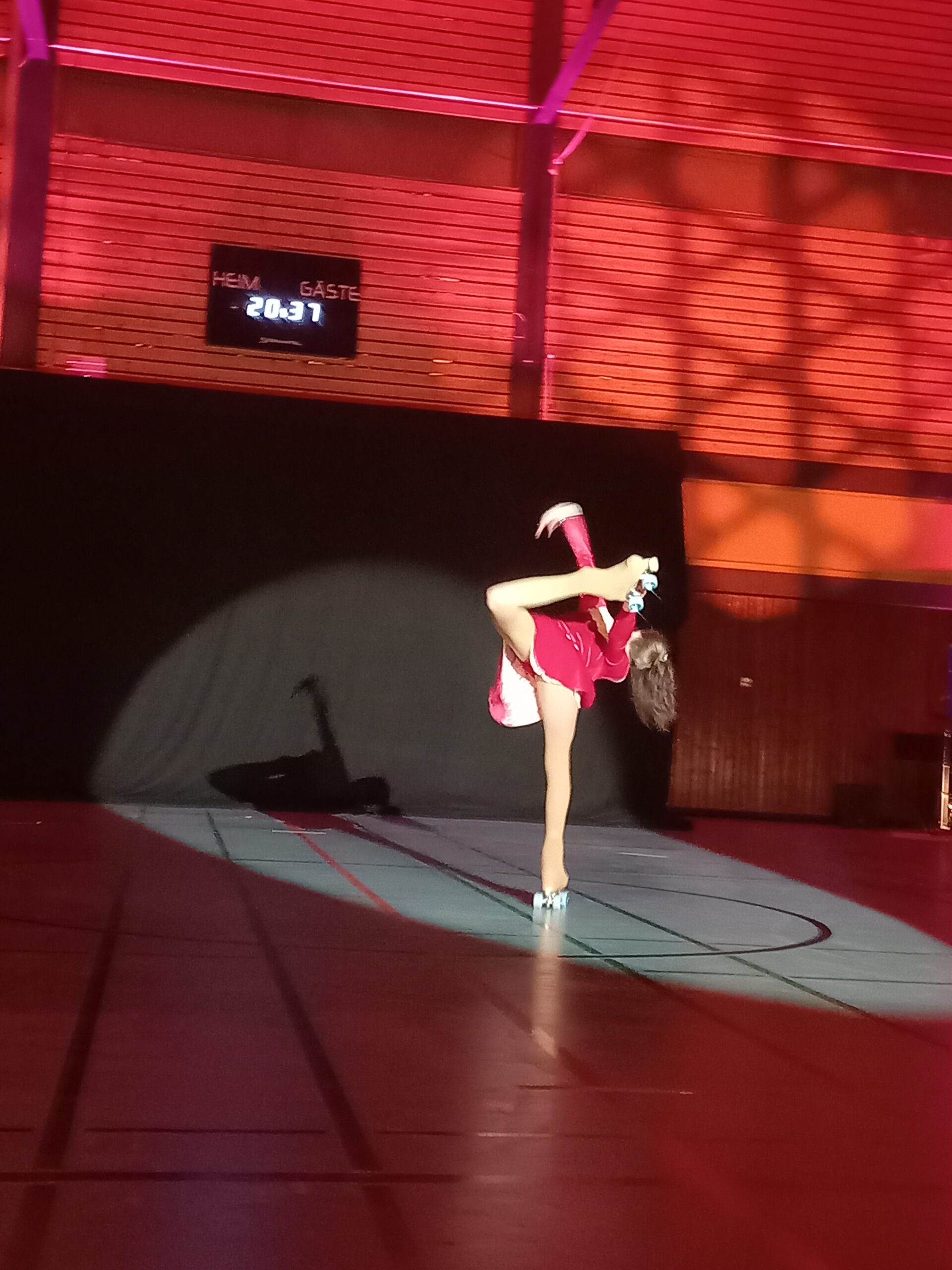 Im zweiten Teil des Abends verlagerte sich das Geschehen in die Sporthalle, wo ein abwechslungsreiches Bühnenprogramm wartete. Die Zuschauerinnen und Zuschauer konnten sich über Musik, Tanz und beeindruckende Beiträge mit Kampfsportelementen freuen. Atemberaubend waren besonders die Darbietungen der Turnerinnen sowie der Kunstradfahrerinnen und Rollkunstläuferinnen, die zeigten, welch hohes Leistungsniveau an unserer Schule vertreten ist.